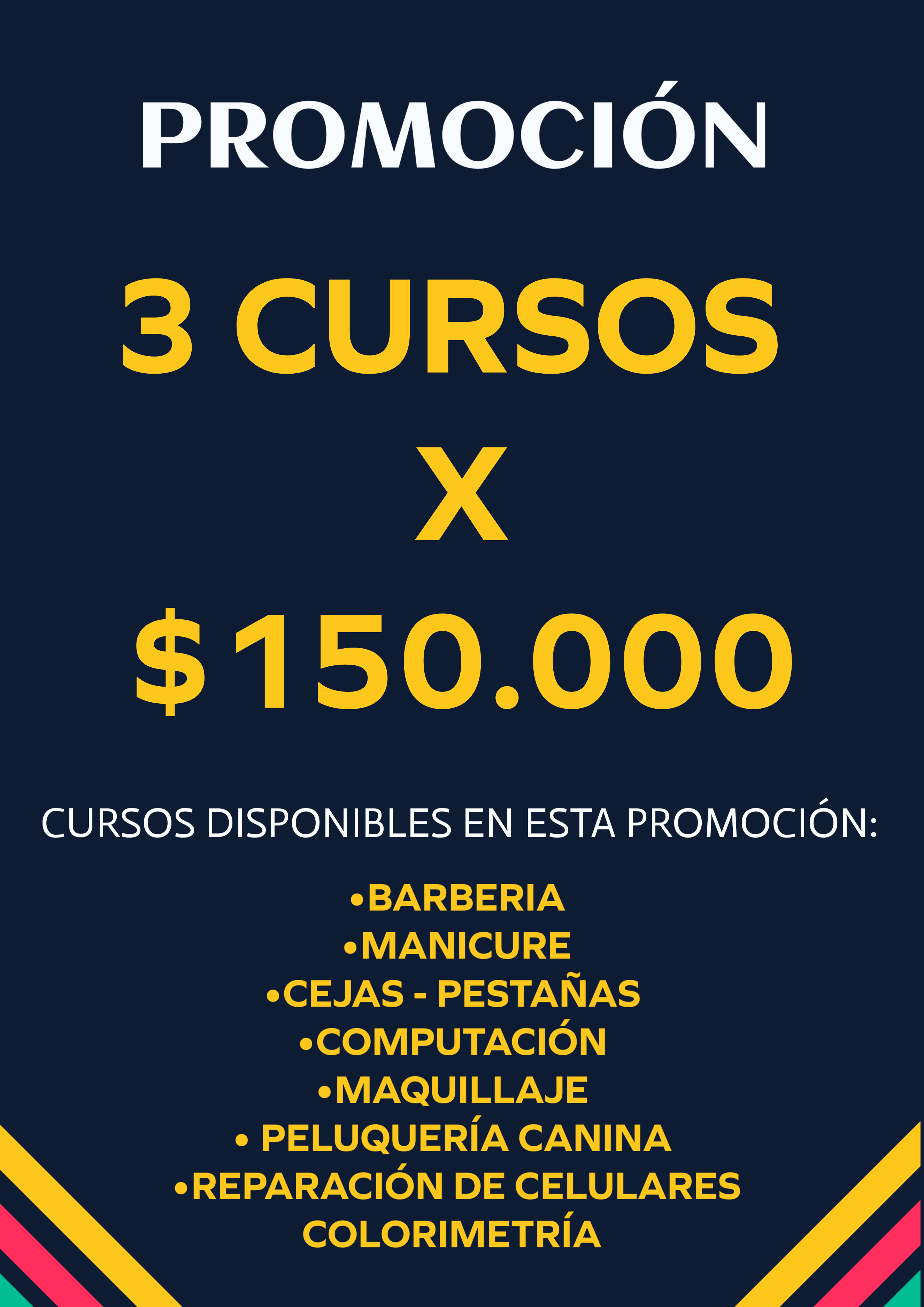 Valor del Curso $70.000, 2 Cursos por $120.000, 3 cursos por $150.000, Duración 4 Clases en Promoción, Duración del Curso 1 mes ( 4 clases).